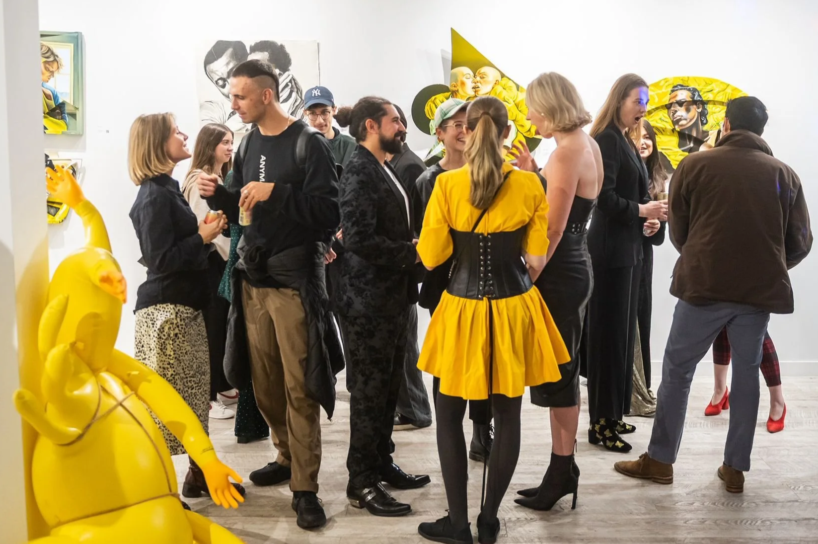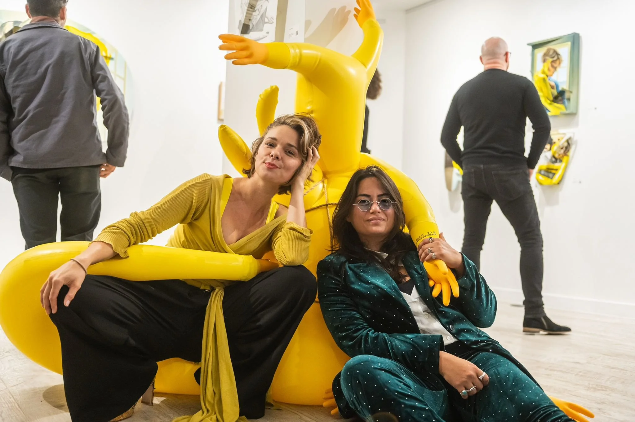 The Hugging Machine is a deeply personal exploration of loneliness, artificial intimacy, and the longing for touch. The series began with a memory from my childhood, constructing a hugging machine from pillows and yellow marigold gloves to comfort myself in the absence of human contact.That early act became the foundation for a body of work that investigates skin hunger- the psychological and physical effects of touch deprivation. In these paintings, human figures engage with fabricated, machine-like forms that offer the illusion of comfort, but fall short of real connection. The series is a meditation on artificial intimacy, the ways we soothe ourselves in isolation, and a reimagining of how care and closeness might be approached when physical connection is absent.